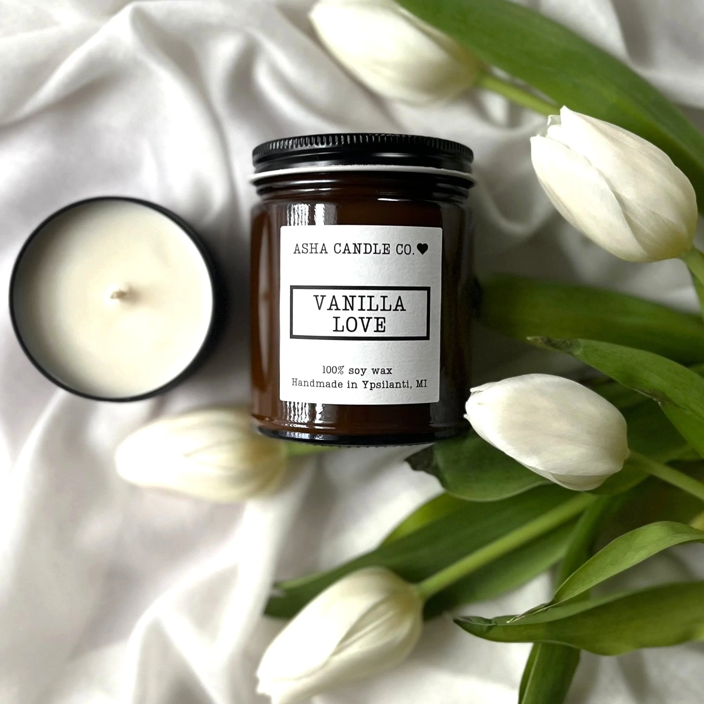 Every Asha Candle is intentionally hand-poured in my Ypsilanti, MI home, with care and purpose in every batch. I use only the highest quality ingredients — 100% USA-farmed soy wax, premium IFRA-certified fragrance oils, and natural cotton wicks — to ensure a clean, safe, and beautifully fragrant burn.